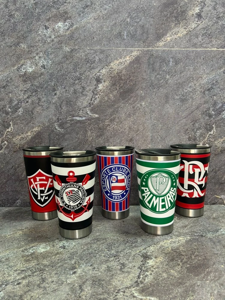 COPO TERMICO COM ABRIDOR PERSONALIZADO COM TIMES DE FUTEBOL
