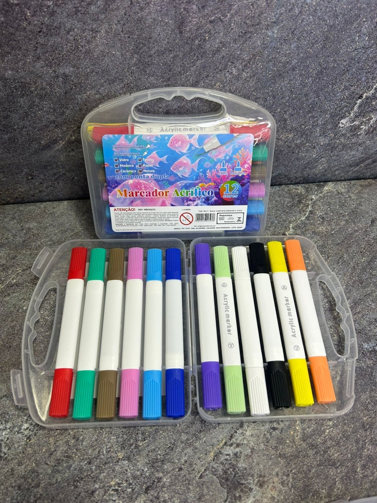 Marcador Acrílico 12 cores com ponta dupla