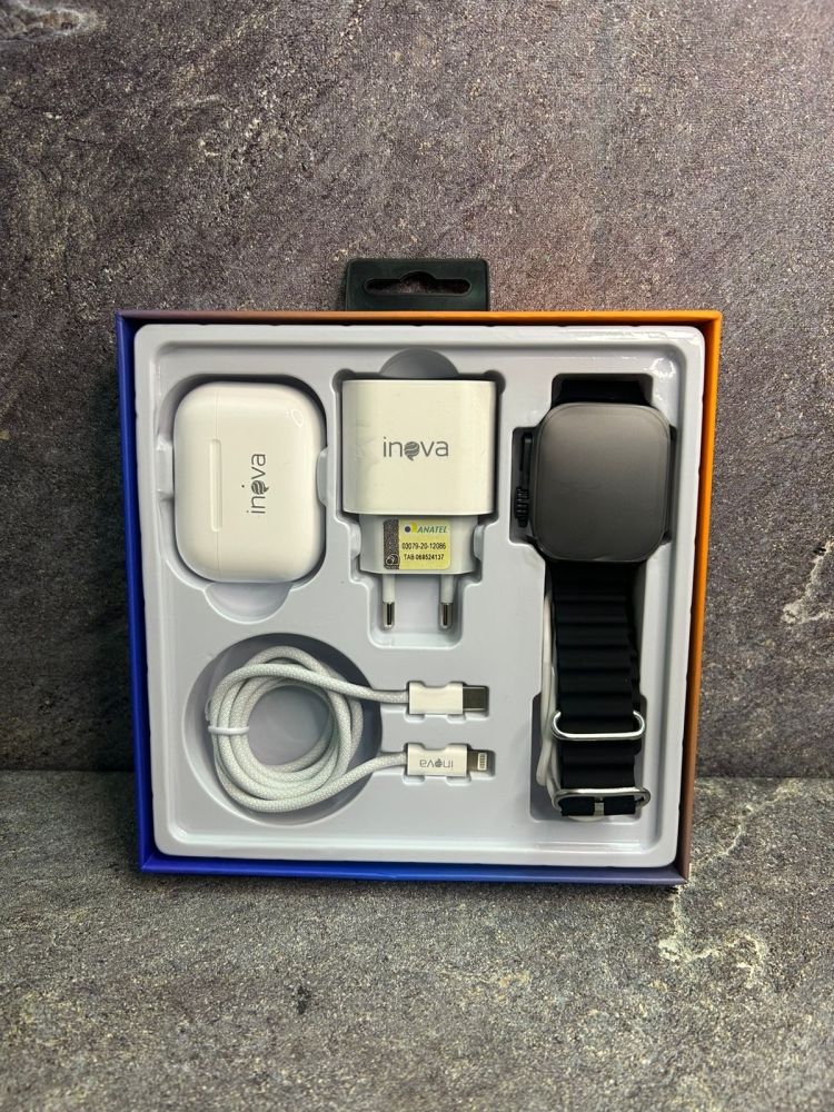 KIT RELOGÍO + CARREGADOR E FONE DE OUVIDO