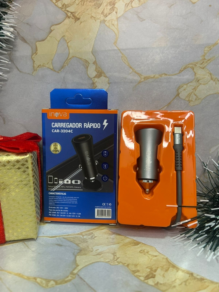CARREGADOR VEÍCULAR RÁPIDO USB DUPLO 45W
